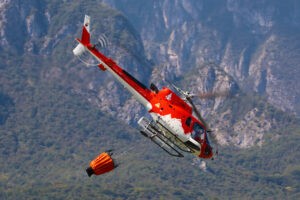 L’ala rotante è stata rappresentata da un H 125 dei Vigili del Fuoco di Trento il quale, riempiendo il Bambi direttamente sull’Adige, ha mostrato varie tecniche antincendio di sgancio dell’acqua. Mentre un H 145 dell’Elisoccorso di Trento ha eseguito fronte pubblico una procedura di recupero con verricello.